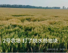 (4)綜上所屬,脫水劑產(chǎn)品在小麥的大面積使用是可以推廣的,產(chǎn)量和品質(zhì)均為影響,水分的確降低到12.7%,收割時(shí)間至少提前3天。給農(nóng)業(yè)生產(chǎn)帶來(lái)極大的好處,可以達(dá)到省工、省時(shí)、省力、高效、環(huán)保的作用。