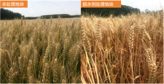 注:從水分變化看,脫水劑處理地塊確實(shí)在小麥成熟進(jìn)程中起到提前的作用,時(shí)間在3-5天。